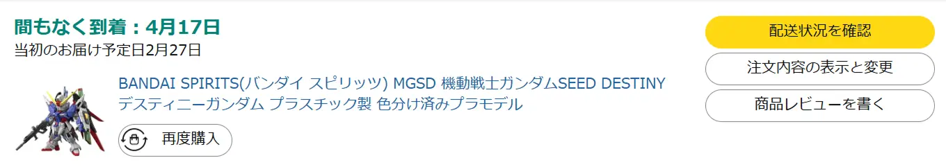 MGSD デスティニー4月にくるって・・・(;・∀・)!!!発売日予約品が再販分になってんじゃねーかw